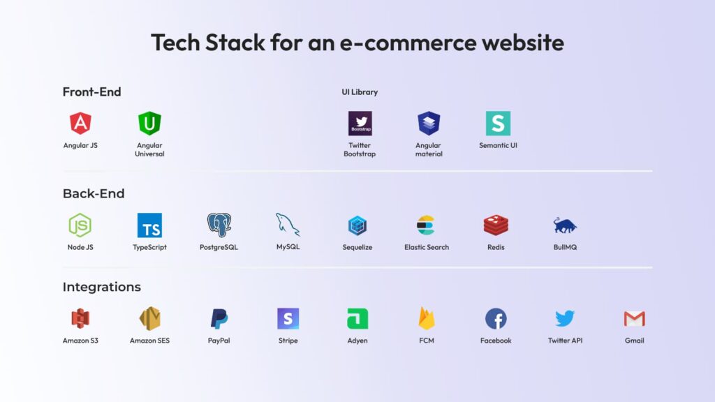 When planning such functionality, it’s also important to choose the right tech stack for ecommerce website development — from frameworks like React or Angular on the frontend to Node.js, PHP, or Python on the backend, combined with scalable cloud hosting and secure payment integrations.